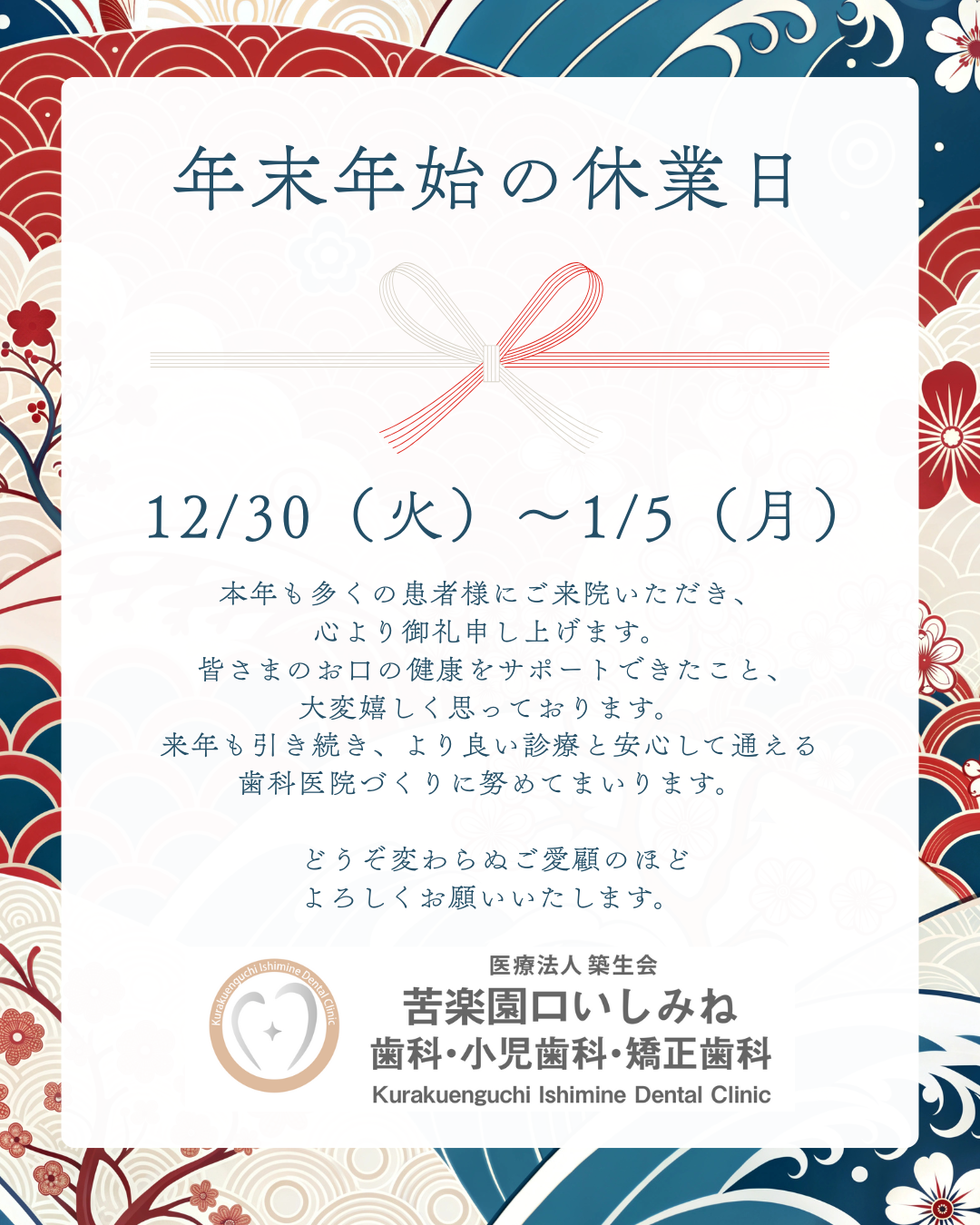 お知らせ|苦楽園口駅徒歩1分の歯医者|苦楽園口いしみね歯科・小児歯科・矯正歯科
